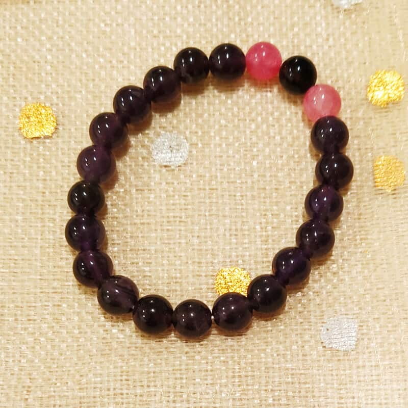 How does the crystal combination help you? I have designed it with the Amethyst being the major stone. It will bring in great divine calming relief inside your body & calm your mind. It will calm your ajna chakra or the third eye. I have also added the Rose Quartz to help you hold yourself in a self-loving space while life throws its curve balls at you. It also strengthens your root chakra to make you feel secure in whatever situation you are. The single Black Onyx helps clear your mind of negative energy from the past and the present. This makes it a beautiful Calm Companion for you.
