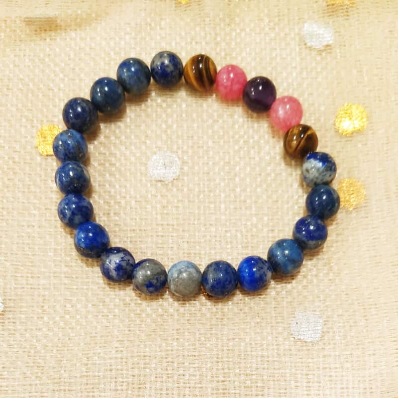 How does the crystal combination help you? I have designed it with Lapiz Lazuli being the major stone. It will heal & open up your throat chakra (Visuddhi Chakra) making it easy for you to access your creative ideas and communicate with confidence. I have also added the Rose Quartz to help you hold yourself in a self-loving space even when people disagree with you or conversations do not go in a positive way. It will keep you calm as you make difficult conversations with people. The Tiger's eye energizes your solar plexus, your center of personal power and confidence much needed for communication. I have also added an Amethyst to help you stay calm and access the wisdom coming from your ajna chakra as you become the greatest communicator of all times.
